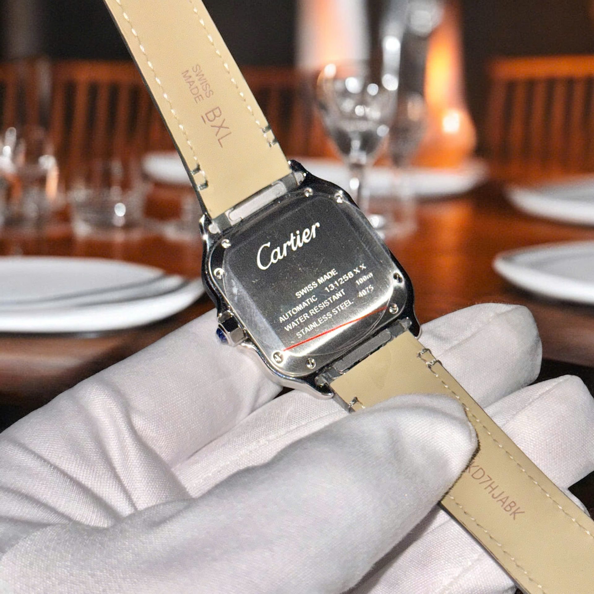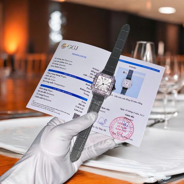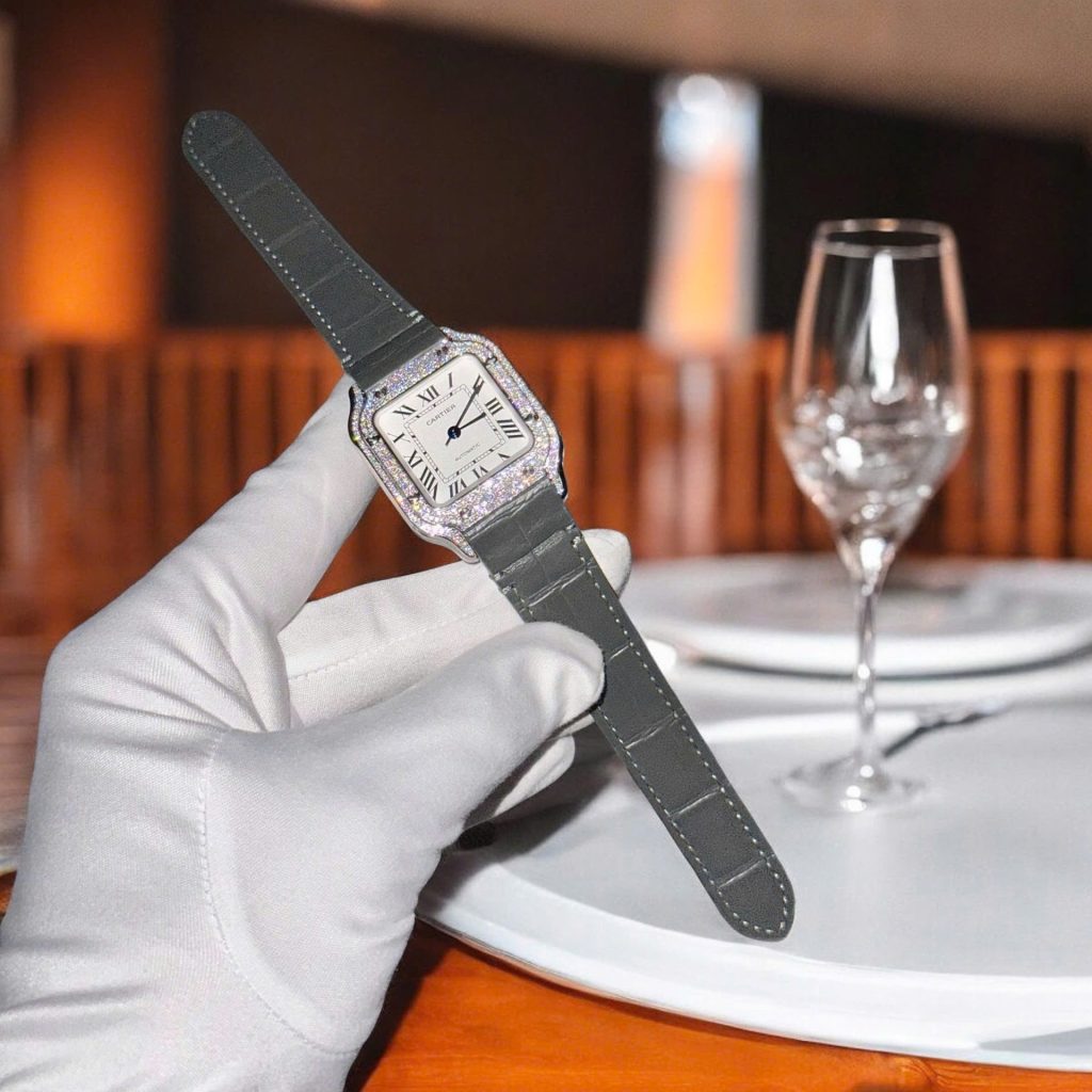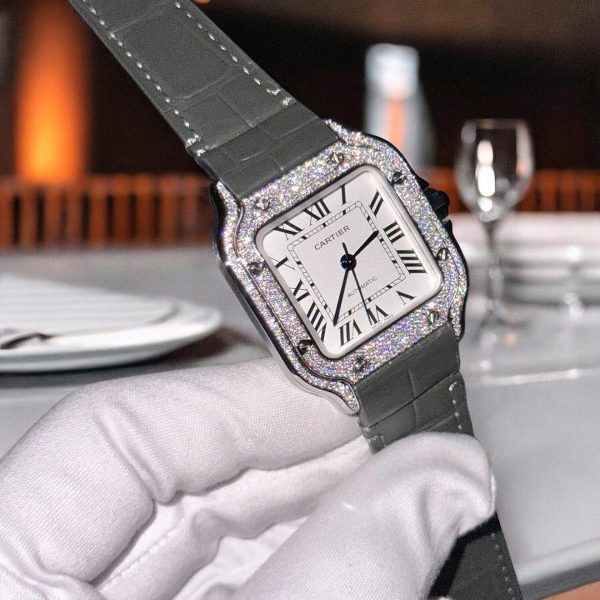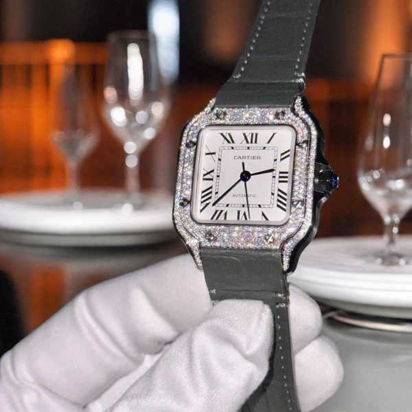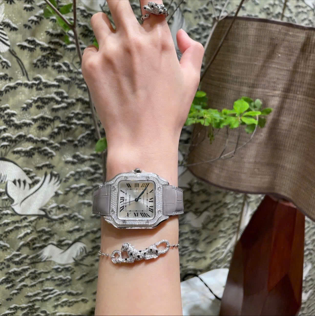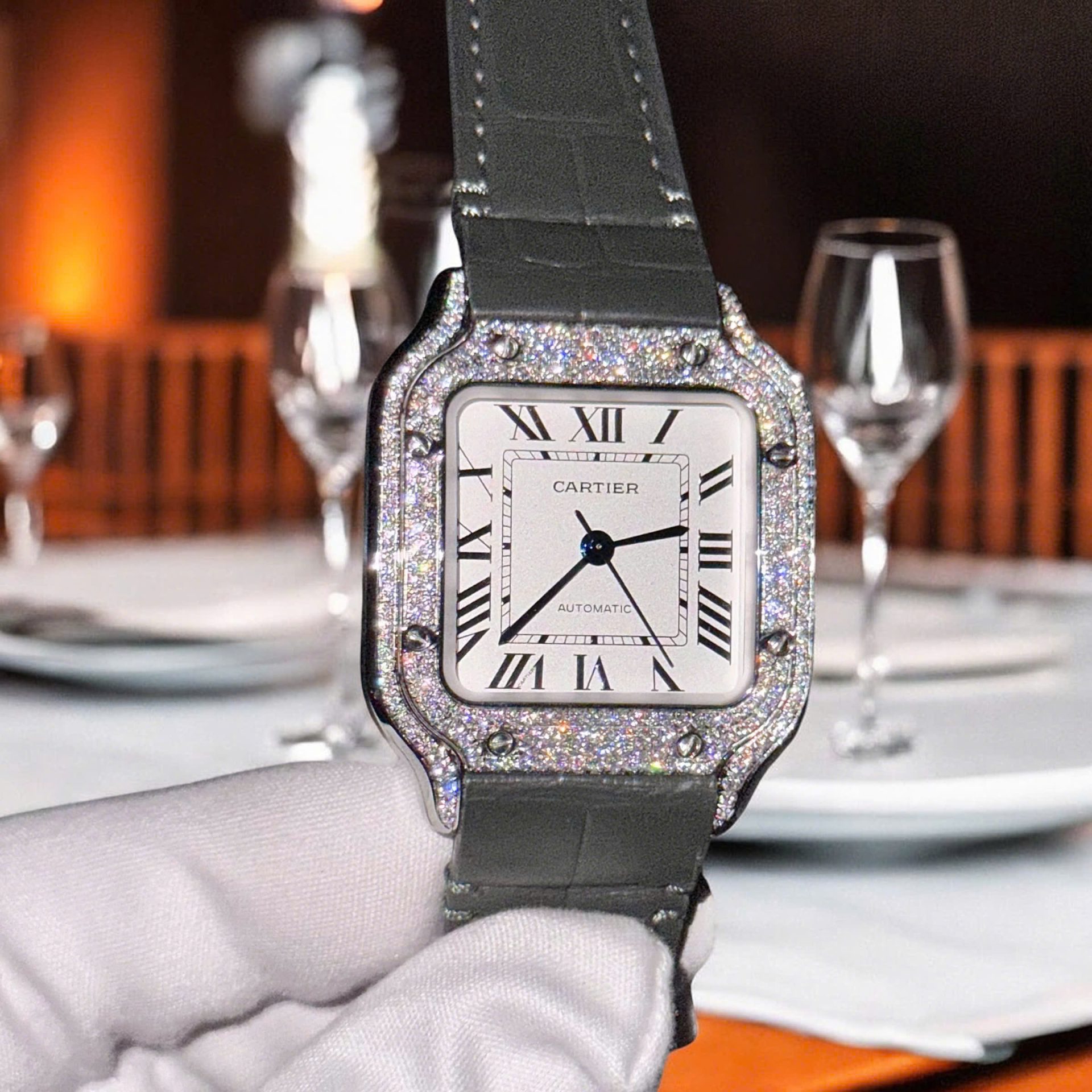 Cartier Santos Women White Dial Imitation Watches Diamonds Moissanite Custom BV Factory 35mm
