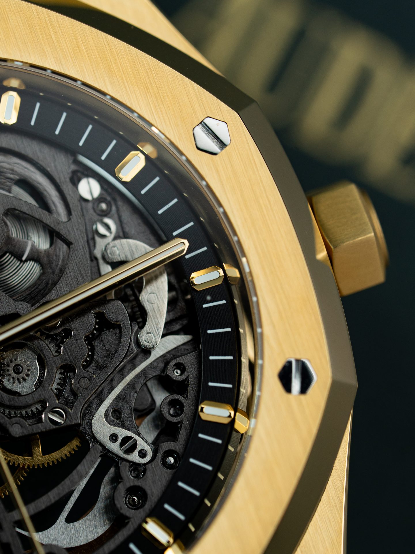 Đồng Hồ Audemars Piguet Rep 11 Royal Oak Openworked 15407 Mạ Vàng Mặt Lộ Cơ Nhà Máy THB 41mm