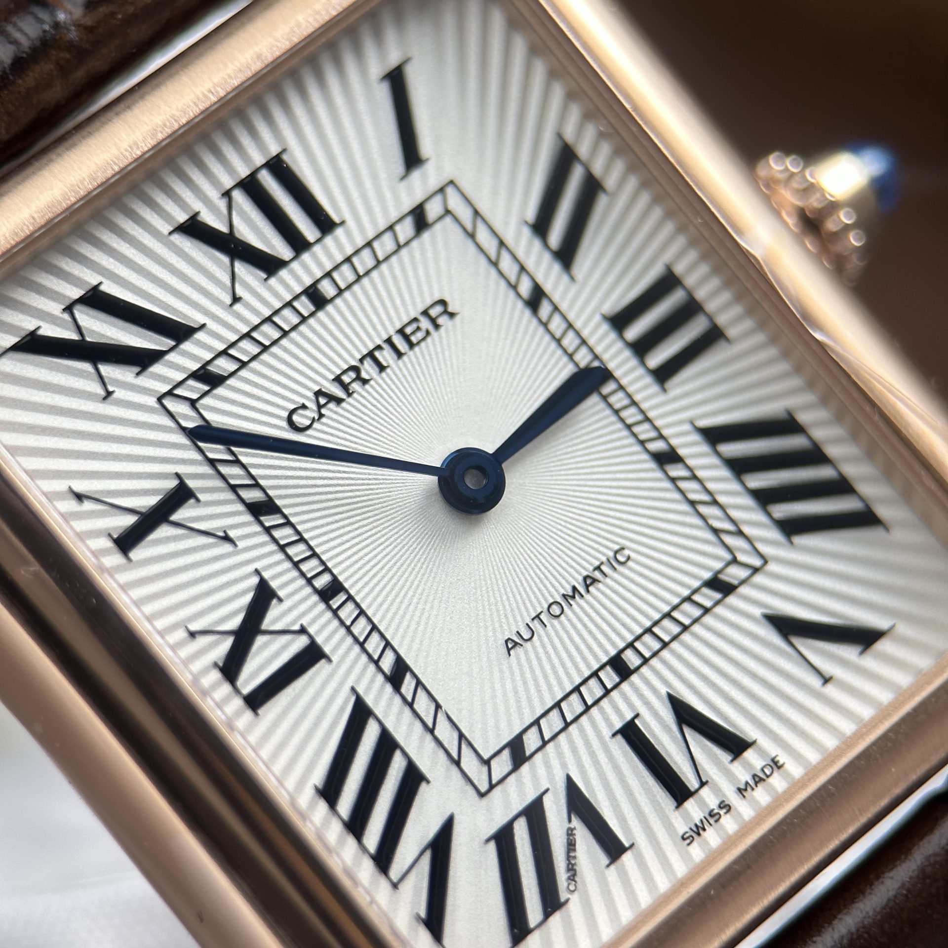 Đồng Hồ Cartier Tank Louis Replica Cao Cấp Mạ Vàng Hồng Mặt Số Màu Trắng Dây Da Màu Nâu 27.8×38.1mm