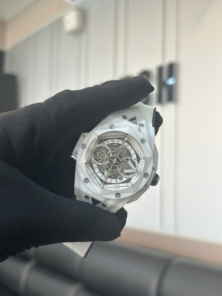 Đồng Hồ Cũ Hublot Nam Rep 11 Big Bang Sang Bleu II White Ceramic BBF Factory 45mm