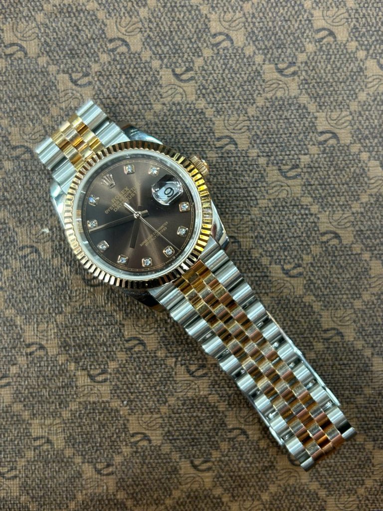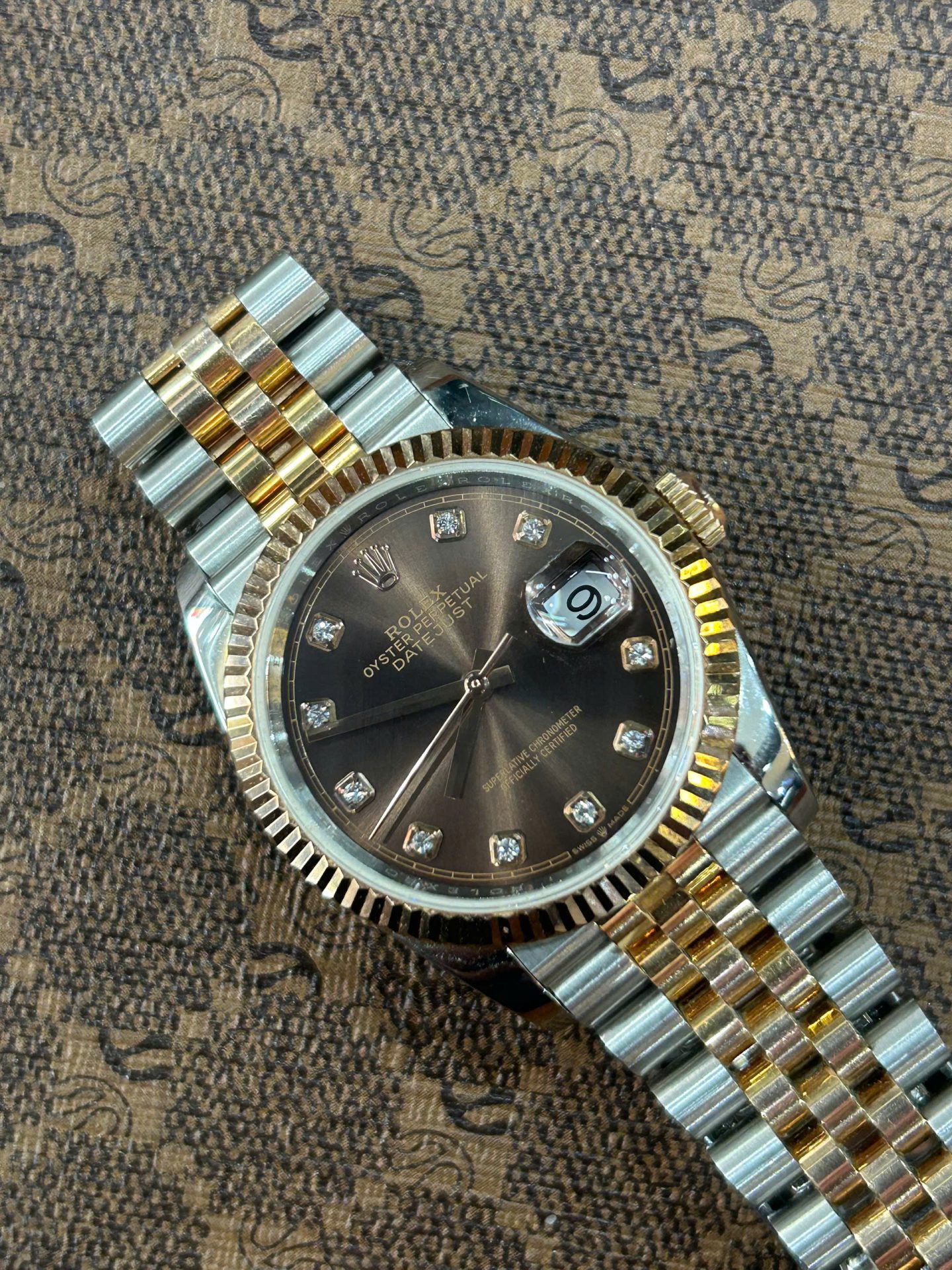 Đồng Hồ Cũ Rolex Bọc Vàng Thật Mặt Chocolate Cọc Số Đính Đá 36mm
