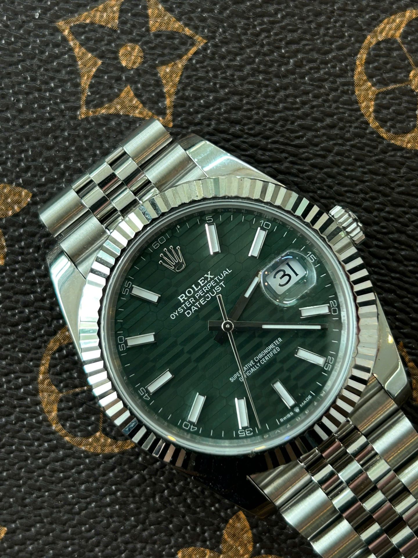 ĐỒNG HỒ CŨ ROLEX DATEJUST REP 11 MẶT XANH LÁ NẾP GẤP CỌC DẠ QUANG CLEAN FACTORY 41MM
