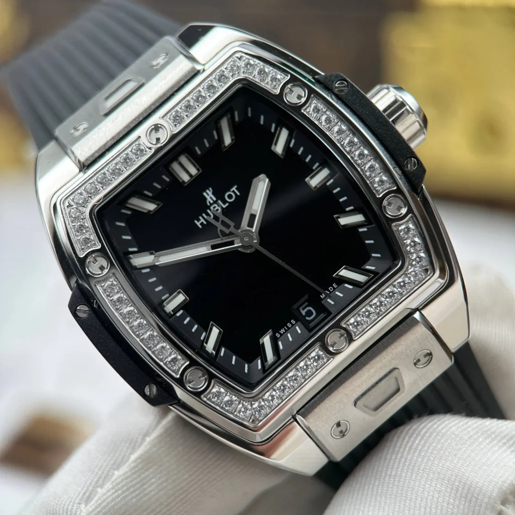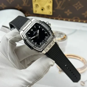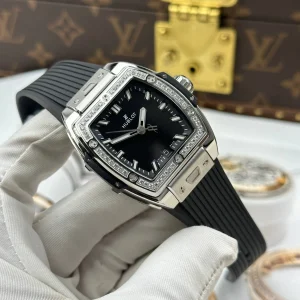 Đồng Hồ Hublot Spirit Of Big Bang Rep Cao Cấp Mặt Số Màu Đen Viền Đính Đá Dây Cao Su 39mm
