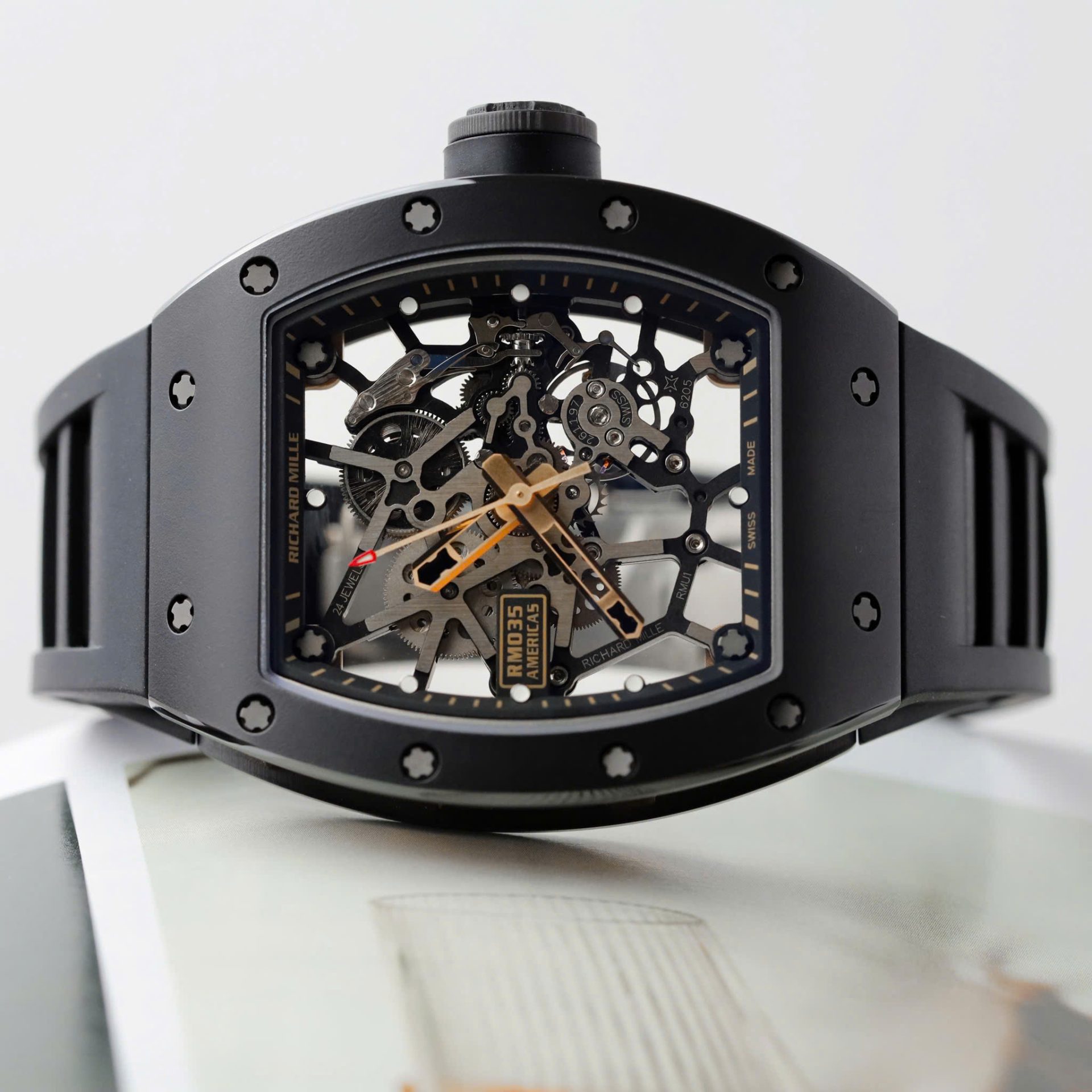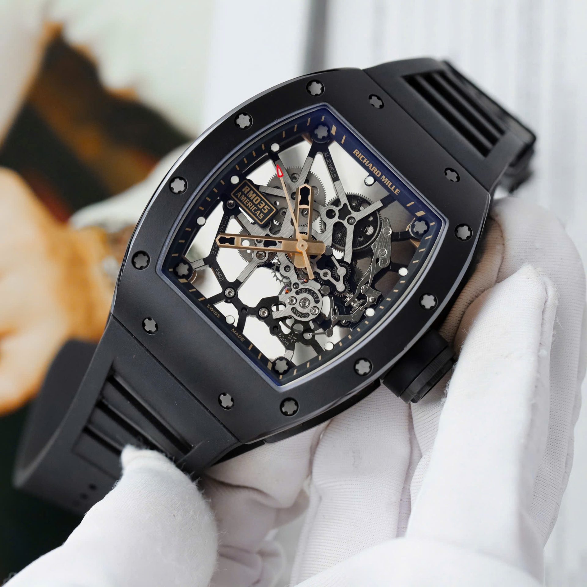 Đồng Hồ Richard Mille Rep Cao Cấp RM035 Americas Toro Vỏ Gốm Đen Dây Cao Su ZF 40x48mm