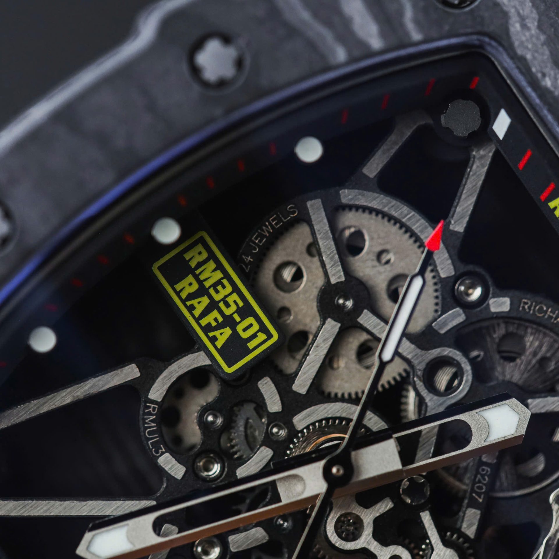 Đồng Hồ Richard Mille RM35-01 Replica Cao Cấp Màu Đen Vỏ Carbon NTPT Xưởng ZF 49,9x43mm