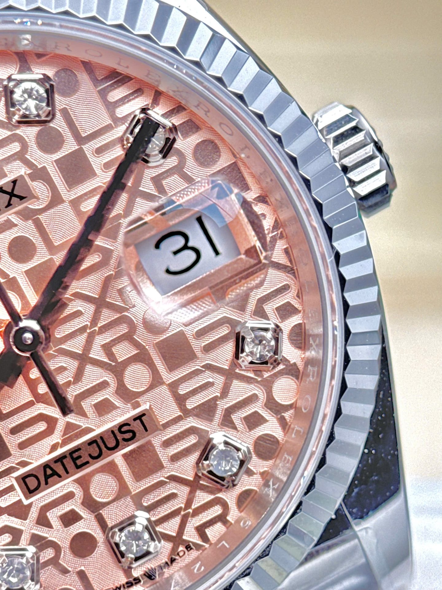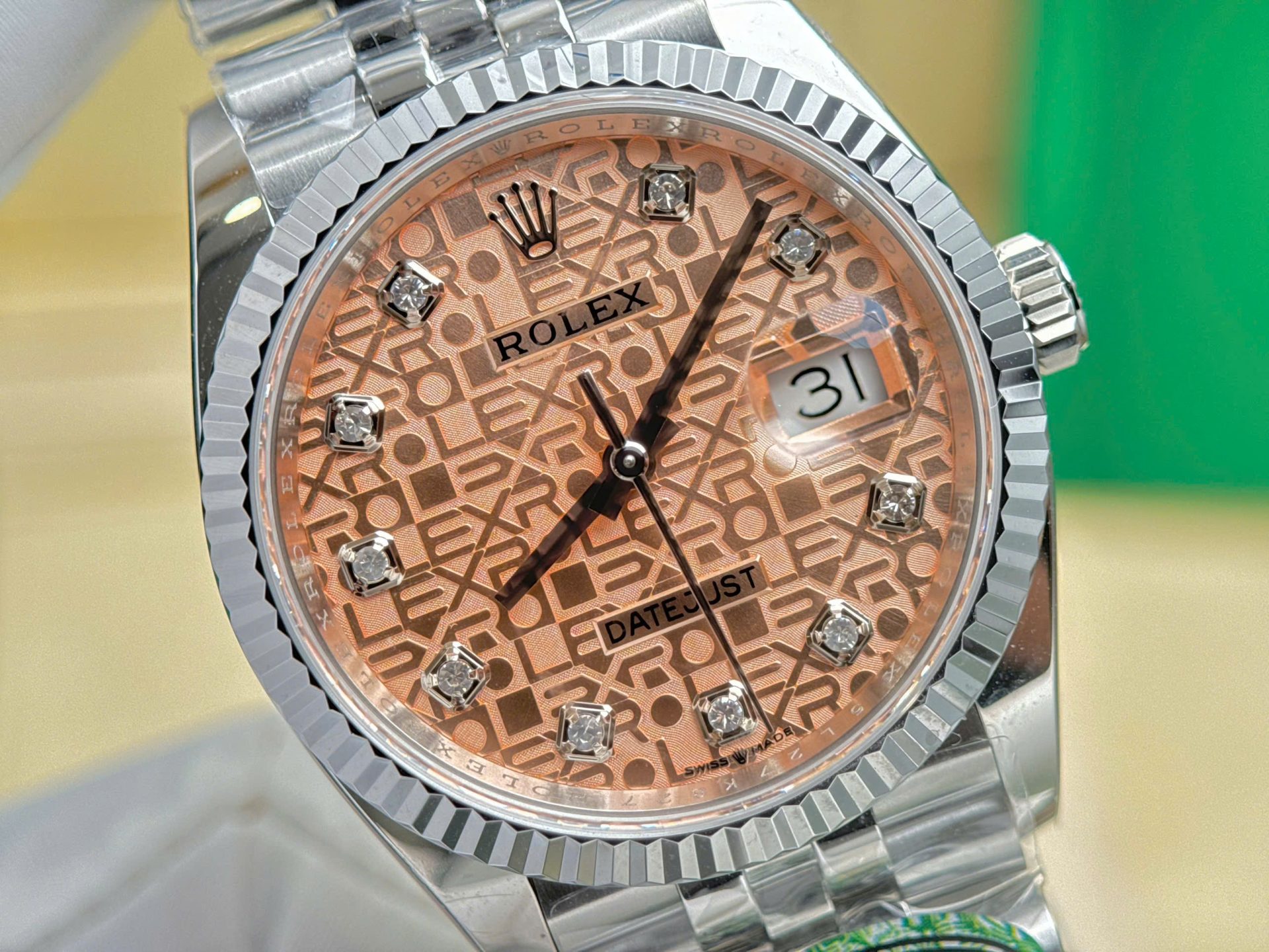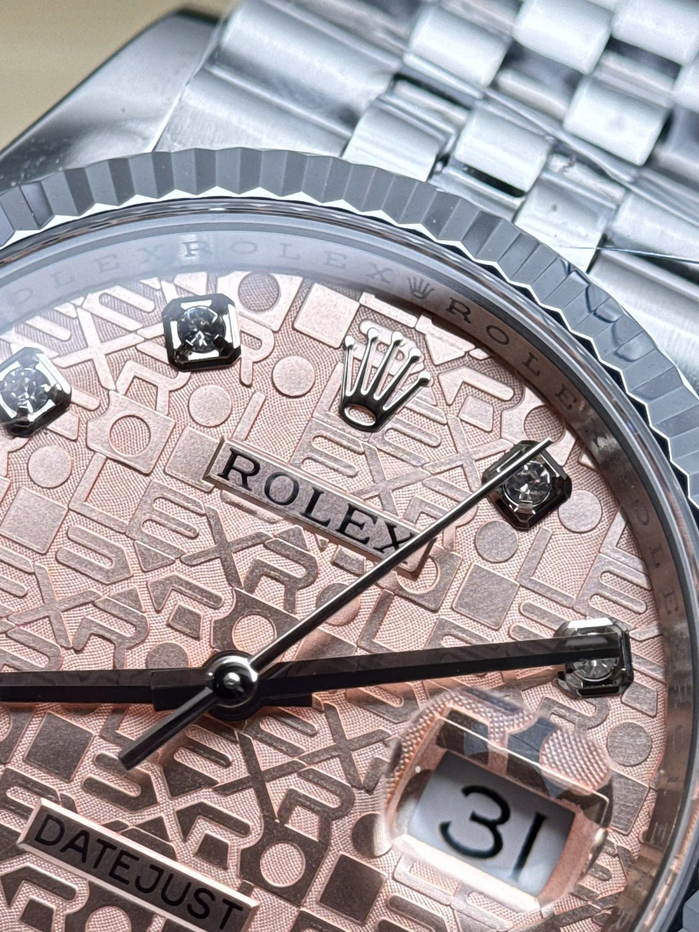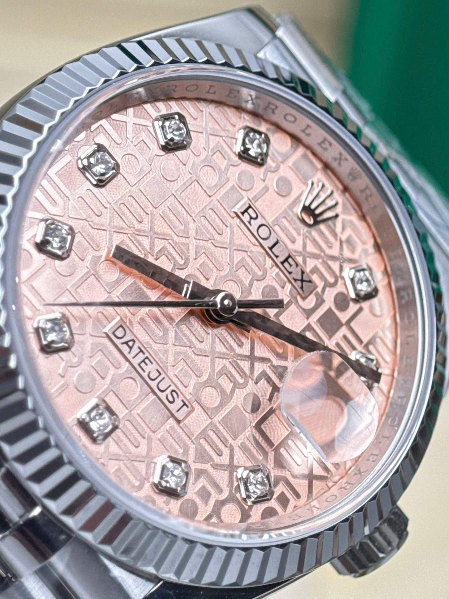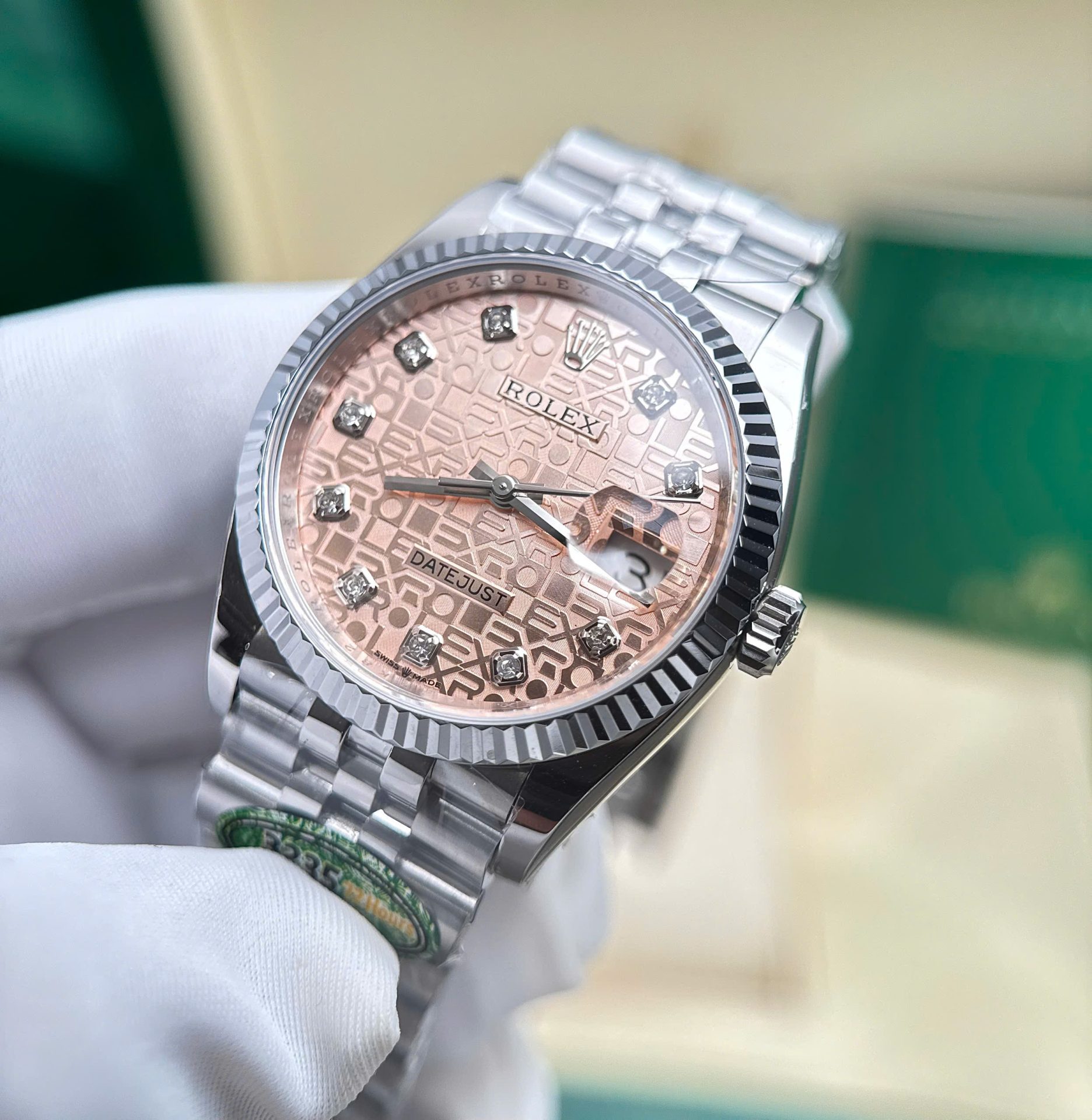 Đồng Hồ Rolex DateJust Chế Tác Họa Tiết Vi Tính Mặt Hồng Nhà Máy AR 36mm