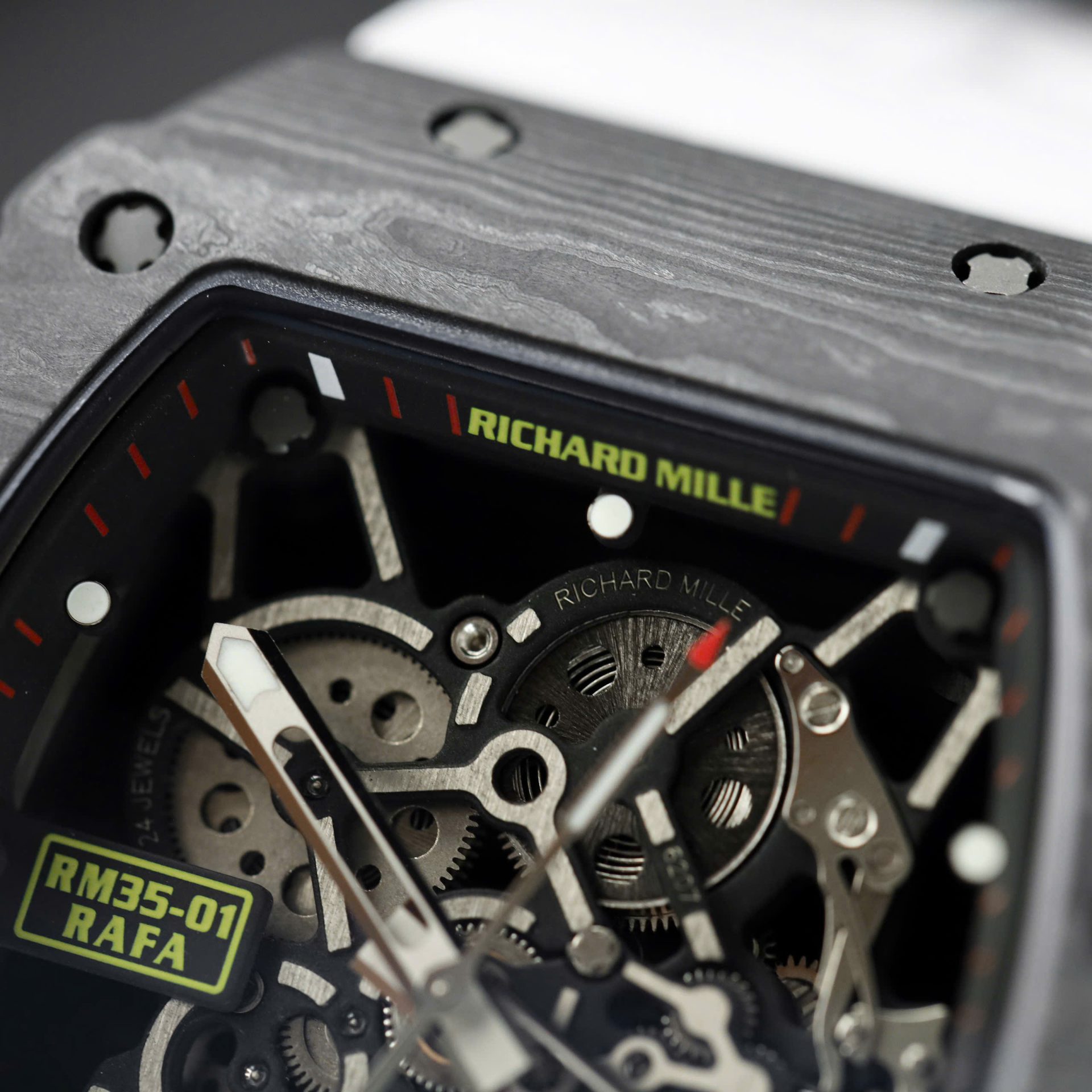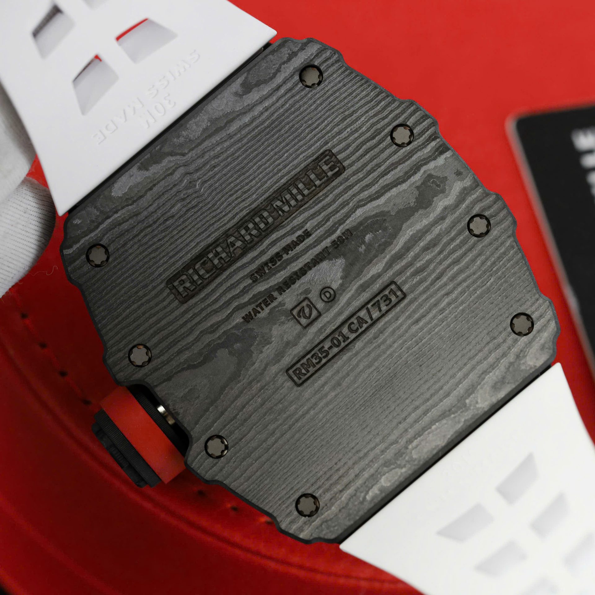 Richard Mille RM35-01 Carbon NTPT Imitation Watches White Rubber Strap ZF Factory 49,9x43mm
